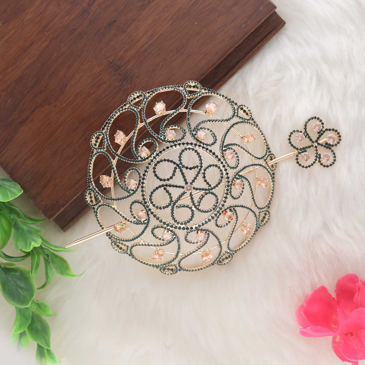 This AD / CZ, Fancy AD Stone Hair Bun in Green Color for Women available in Free Size.