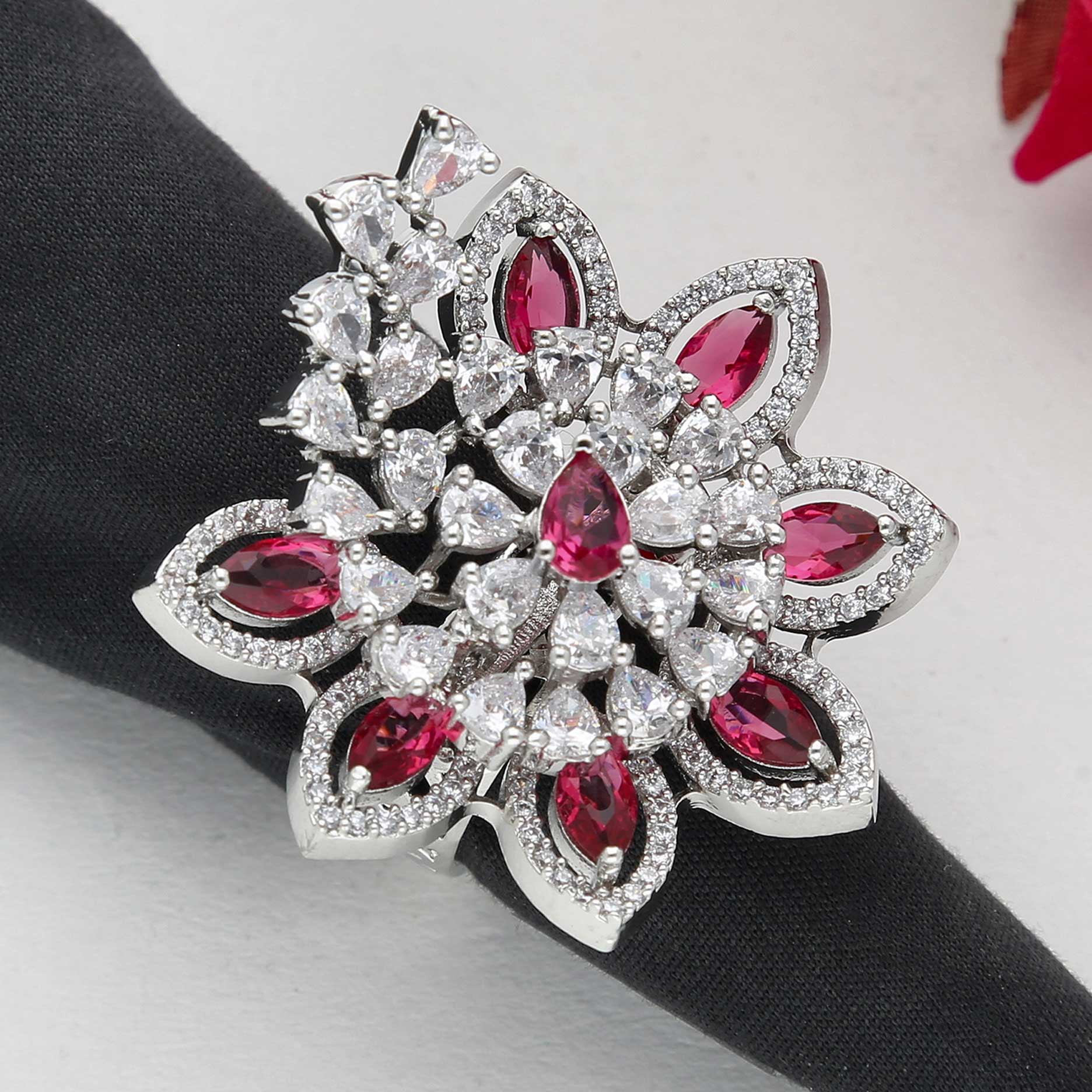This AD / CZ Adjustable ring in Pink & White Color for Women available in Free Size.