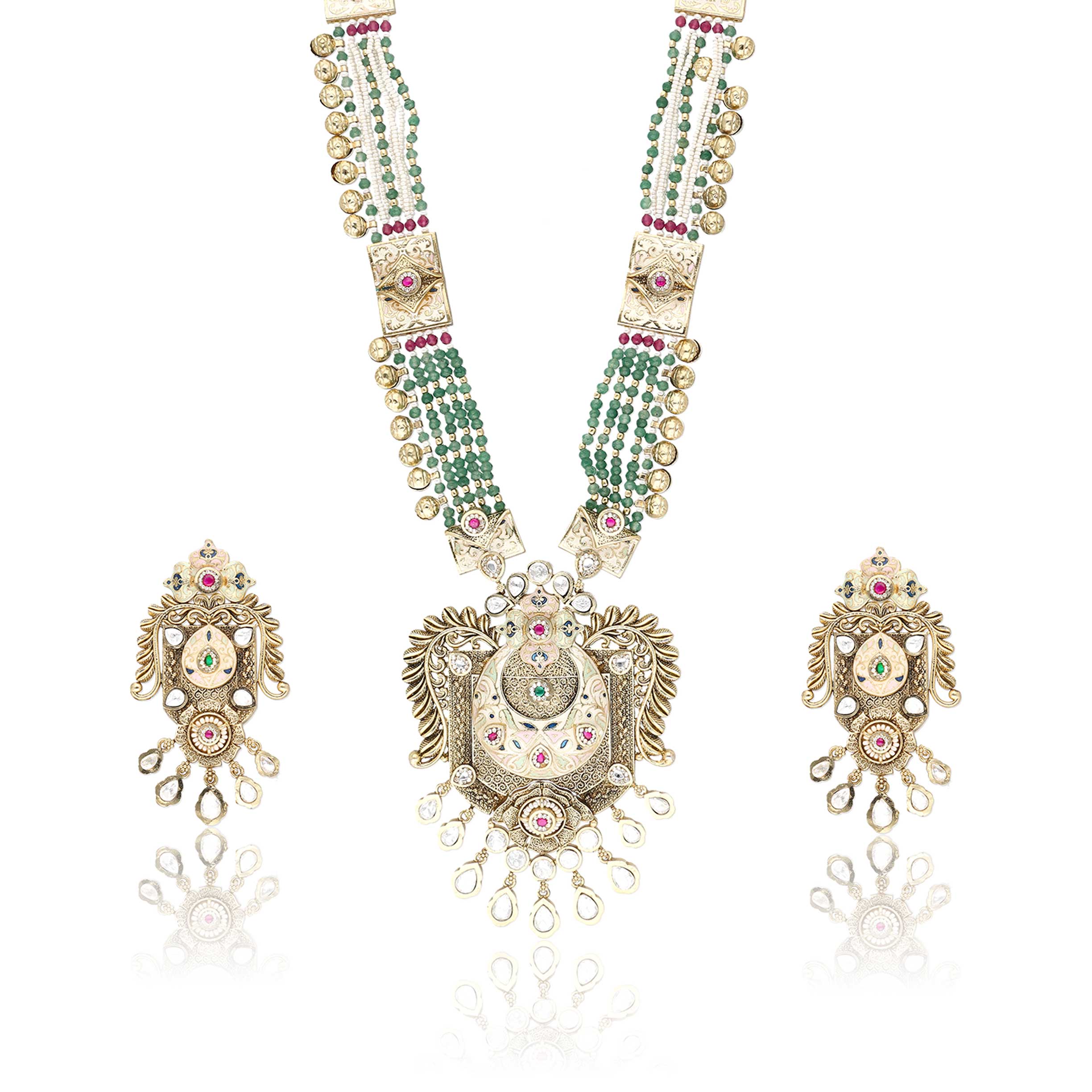 This Rajwadi / Heritage, Kundan, Pearl Beautiful Jewellery Set in Ruby & White Color for Women available in 26 in Size.