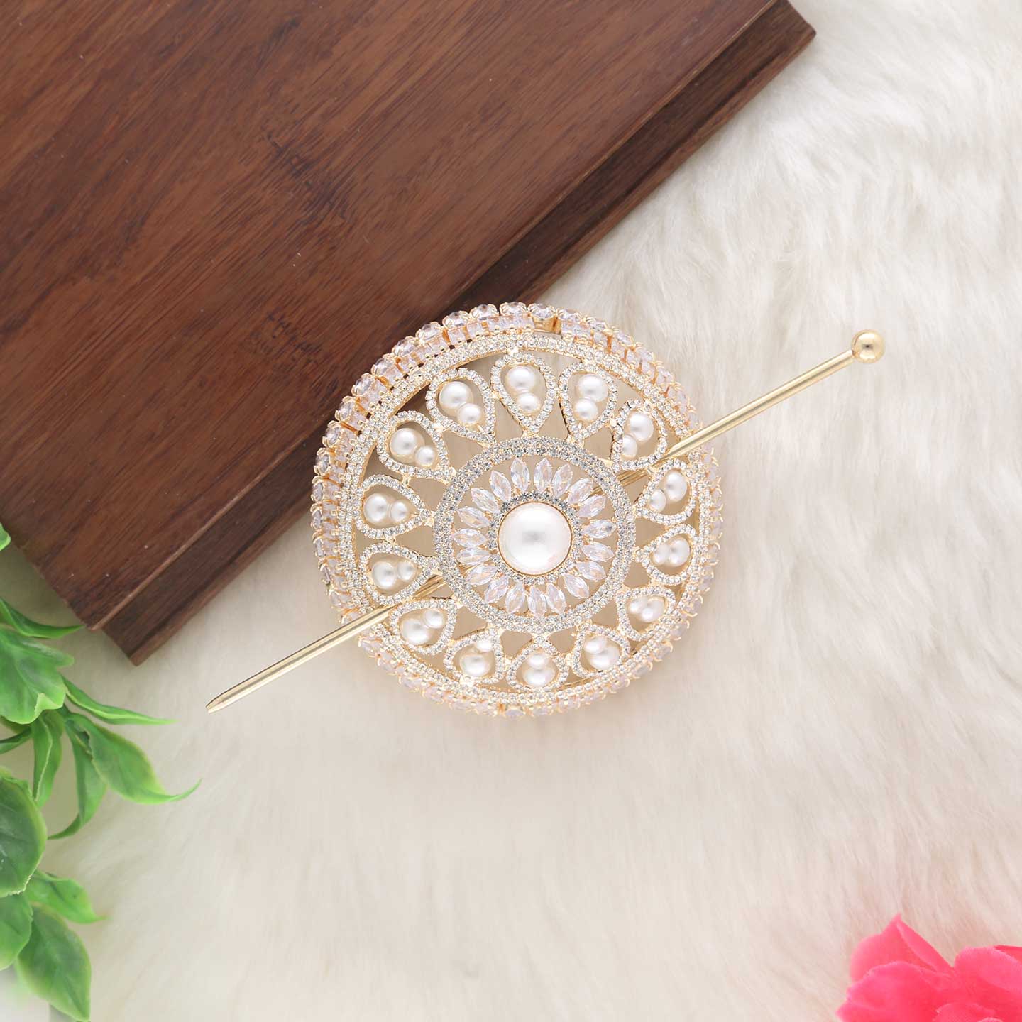 This AD / CZ, Fancy, Pearl Classic Crystal Hair Bun in White Color for Women available in Free Size.