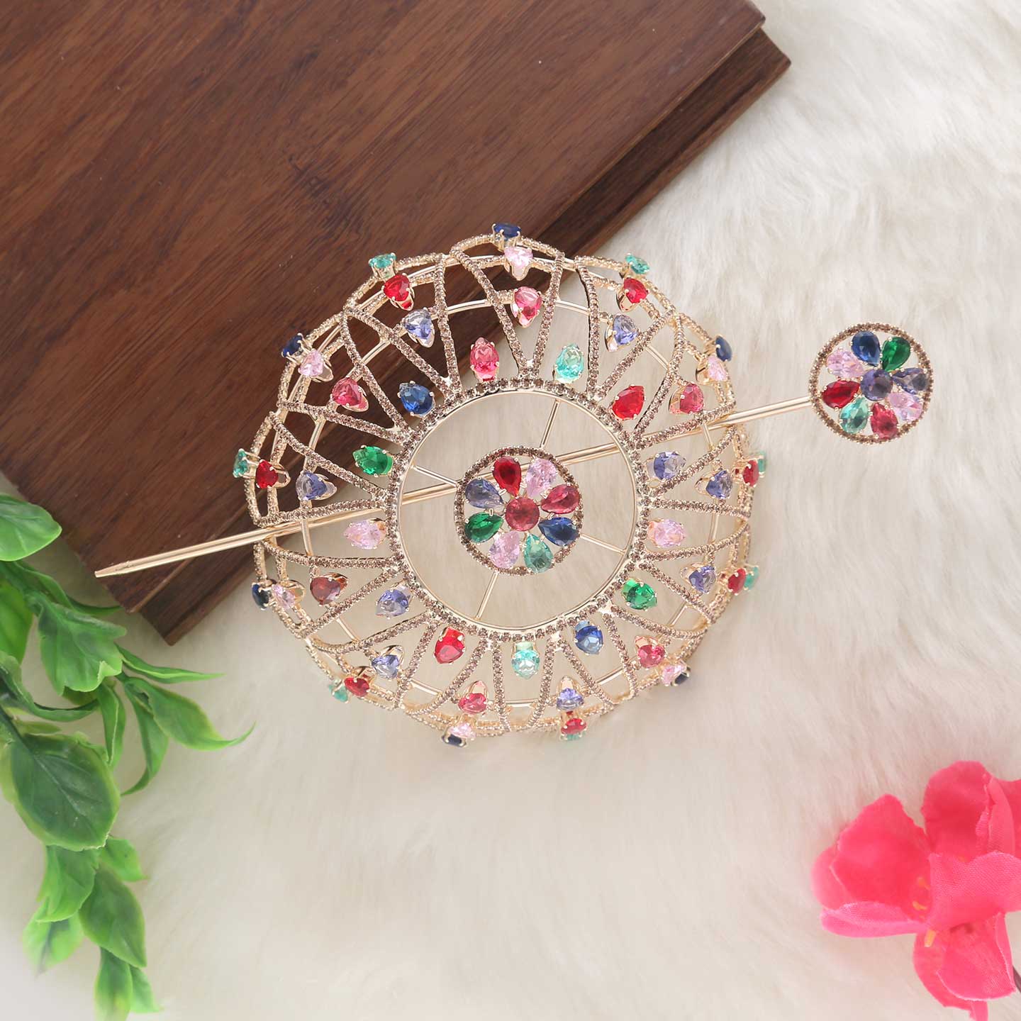 This AD / CZ, Fancy Crystal Bun Hair Accessory in Multicolor for Women available in Free Size.