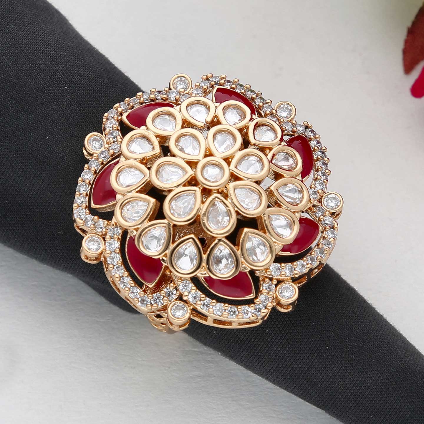 This AD / CZ Elite Fancy Rings in Maroon Color for Women available in Free Size.
