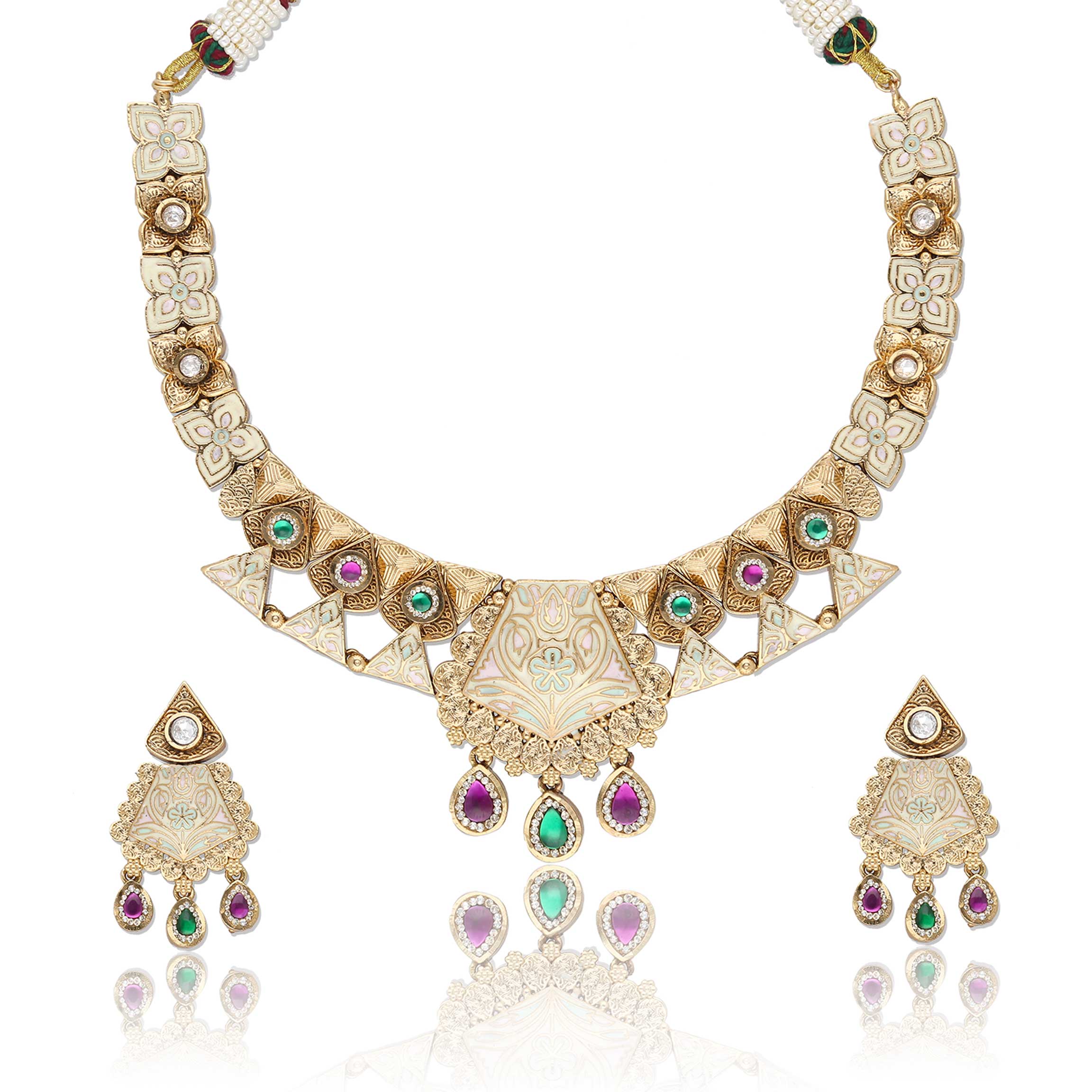 This Rajwadi / Heritage, Kundan Fancy Jewellery Sets in Ruby & Green Color for Women available in Free Size.