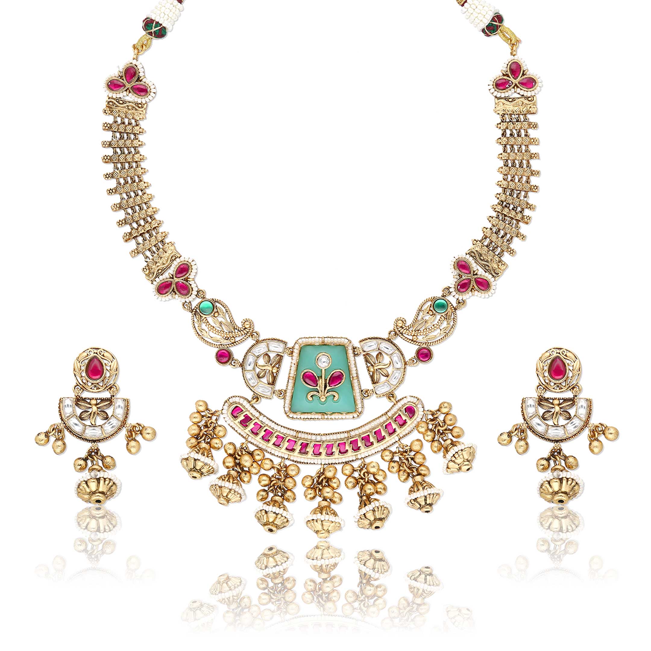 This Rajwadi / Heritage, Kundan, Pearl Fashion Jewellety Set in Ruby & Green Color for Women available in Free Size.
