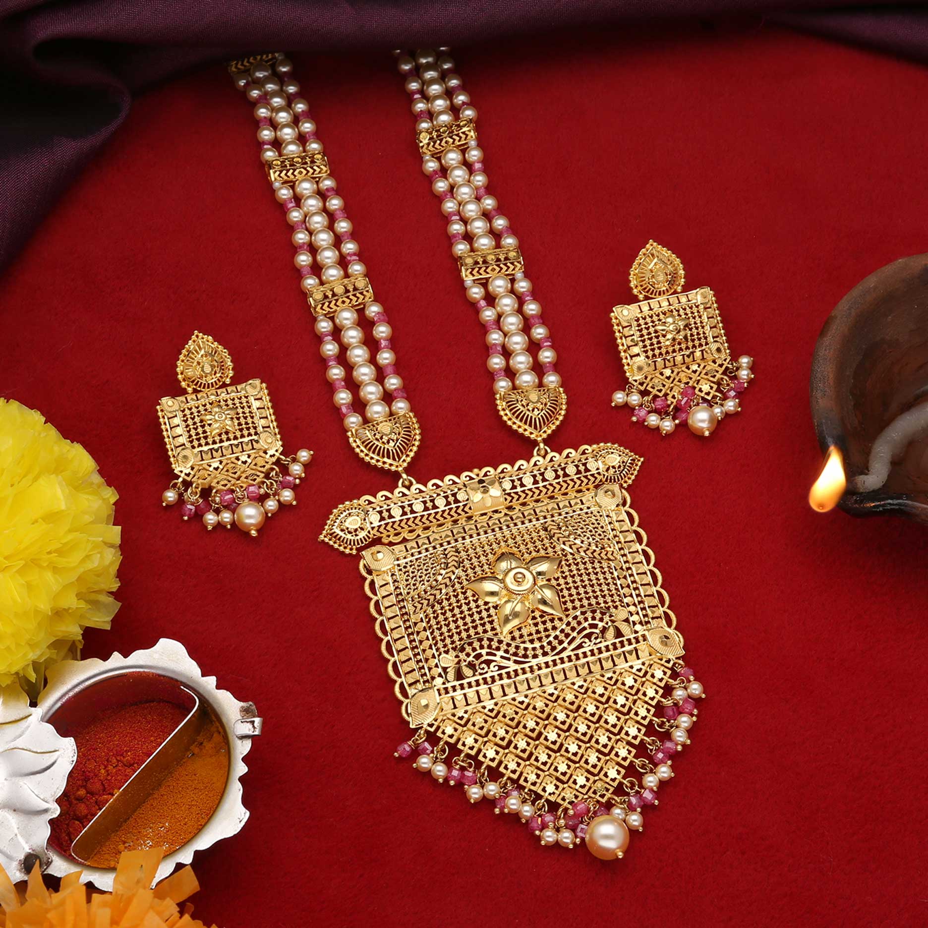 This Forming, Pearl Long Necklace Set in Pink Color for Women available in 24 in Size.