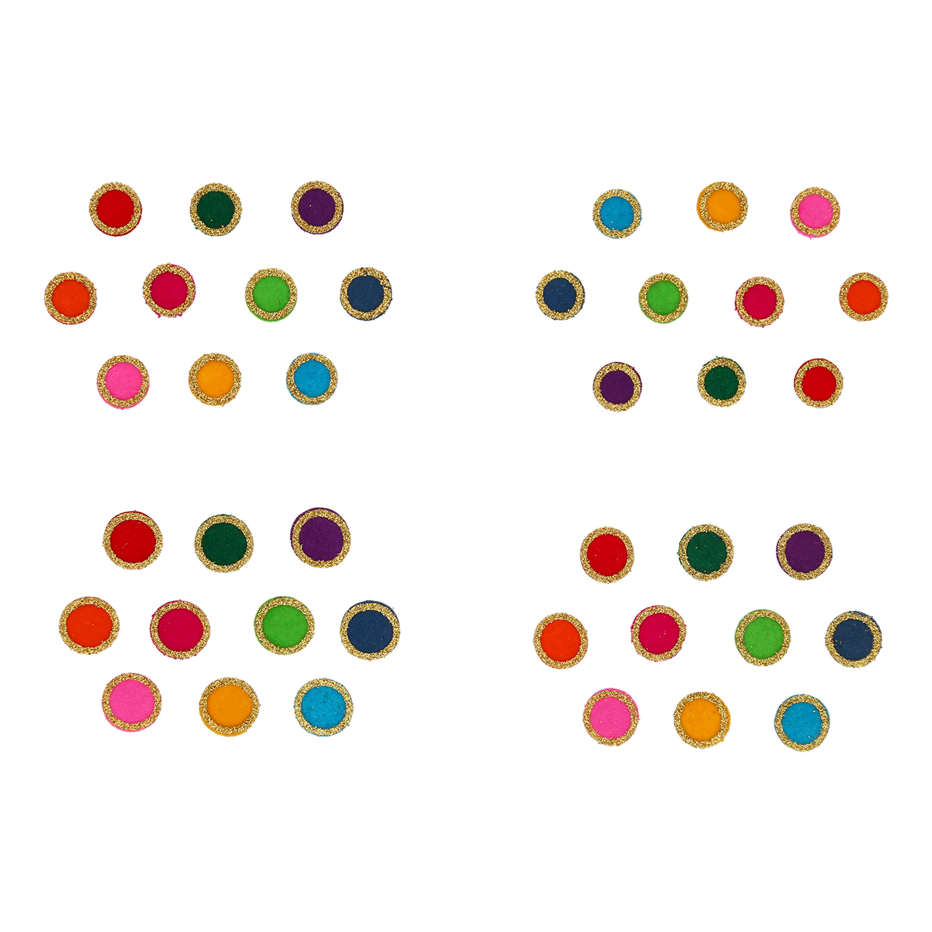 This Multicolor Velet Bindi in Set A (4.5mm; 5mm; 6mm & 7mm) Size for Women available in Set A (4.5mm; 5mm; 6mm & 7mm) Size.