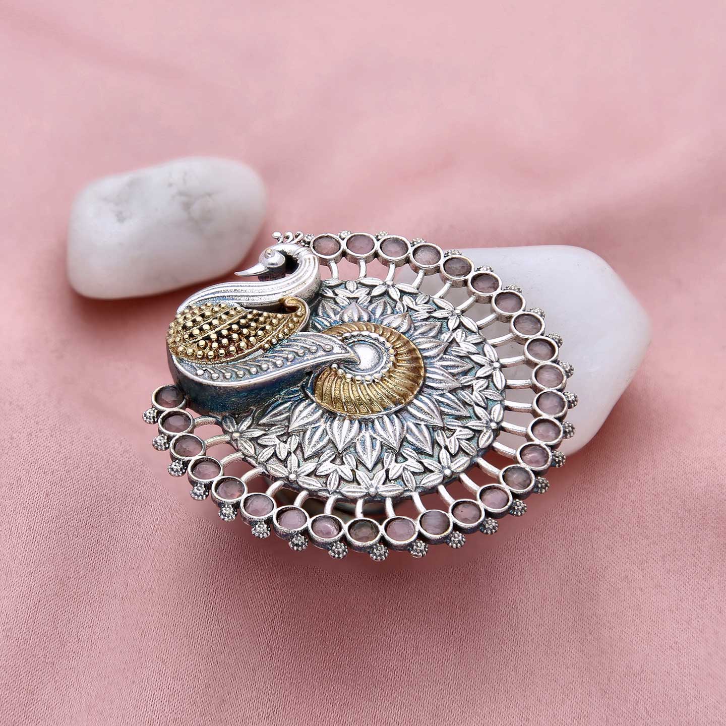 This Oxidised Peacock Ring in Pink Color for Women available in Free Size.