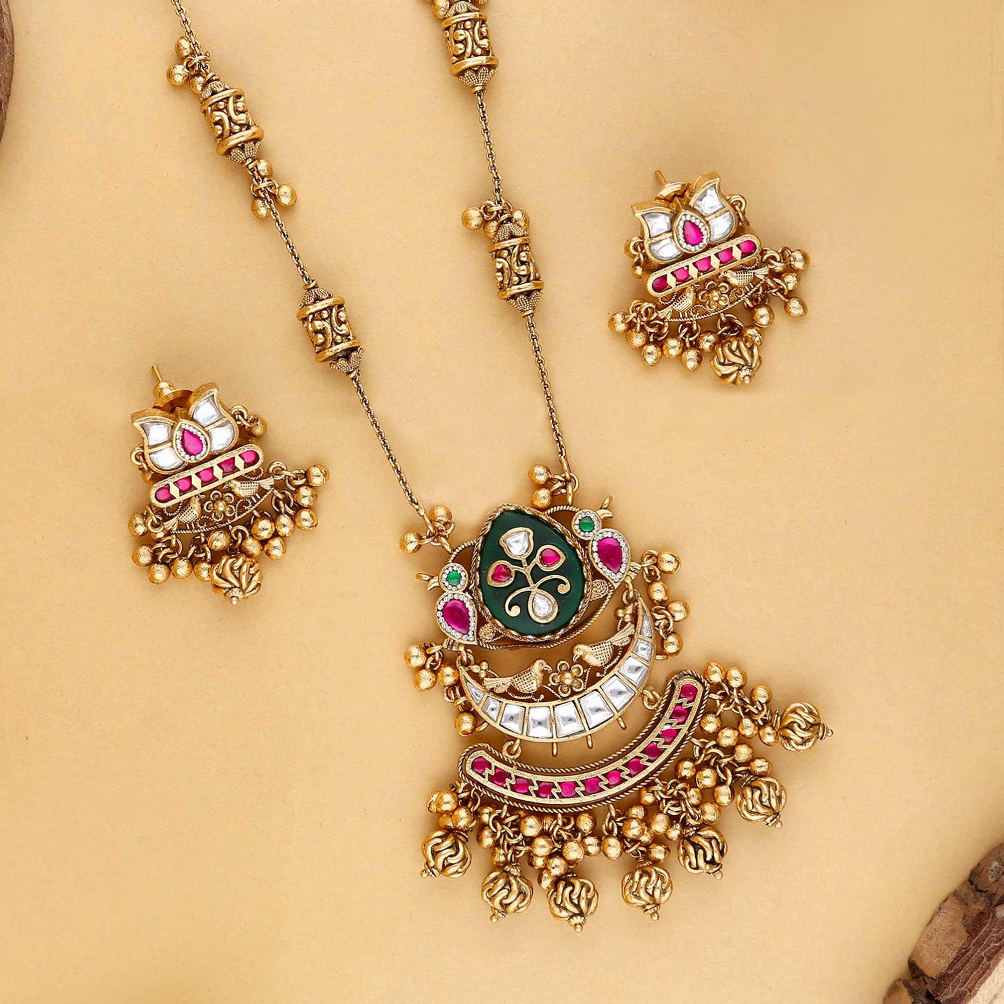 This Rajwadi / Heritage, Kundan Premium Quality Necklace in Ruby & Green Color for Women available in 23 in Size.