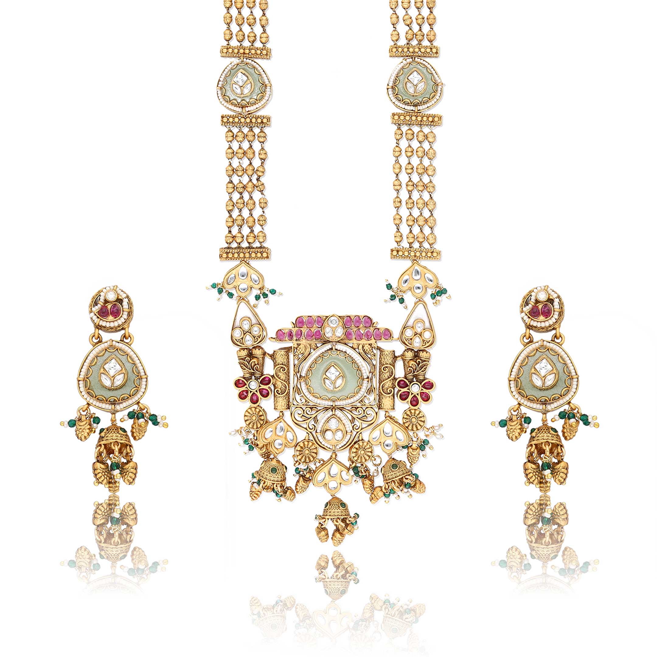 This Rajwadi / Heritage, Kundan, Pearl Stylish Jewellety Set in Ruby & Green Color for Women available in 21 in Size.