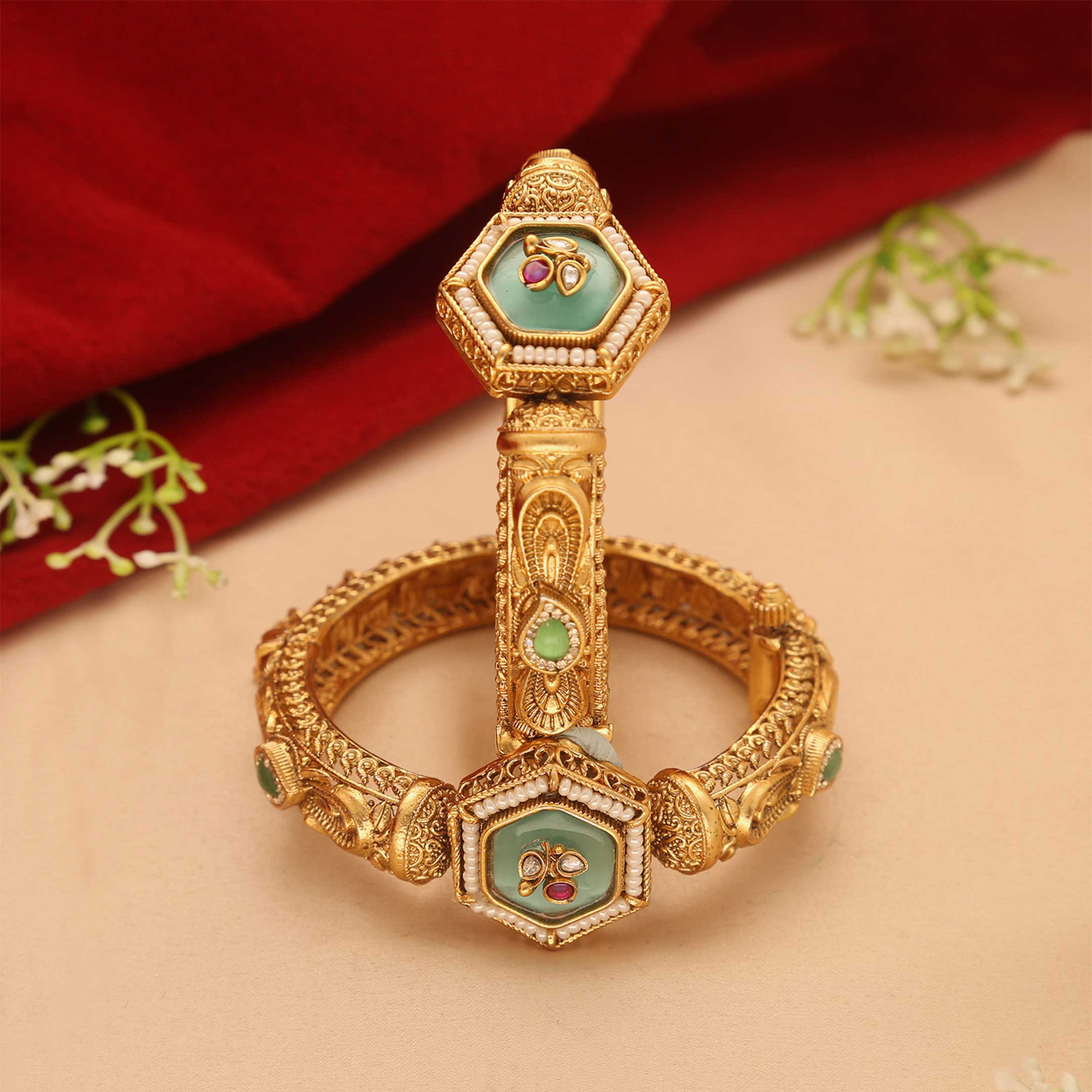 This Kundan, Pearl, Rajwadi / Heritage Trending Bangles in Ruby & Mint Color for Women available in 2.4 Size.