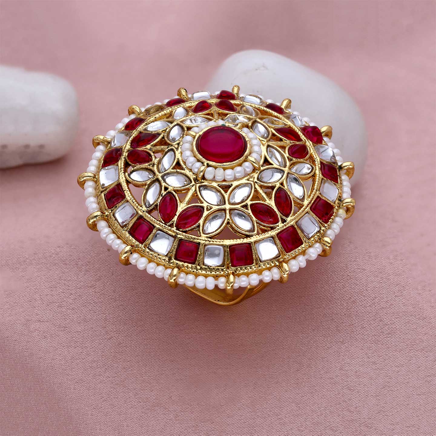 This Kundan Trendy Designer Ring in Ruby Color for Women available in Free Size.