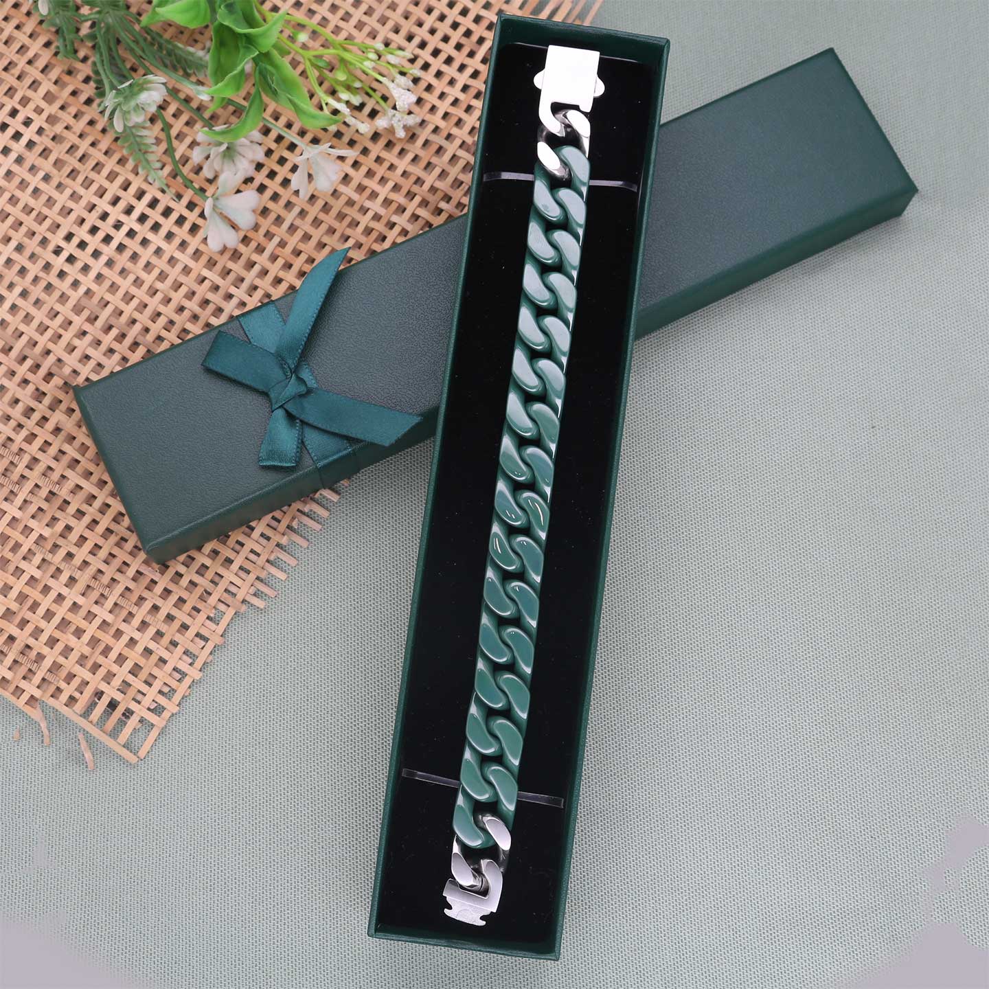 This Plain Unique Design Bracelet in Green Color for Men available in Free Size.